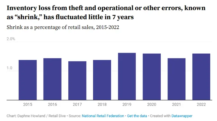 This is the cost related to risks that a business might face while its goods are stored in a warehouse. These include obsolescence and depreciation, damage and deterioration of any product, theft and shrinkage, and expired or outdated products. According to retail dive, the average shrinkage cost that businesses bear is around 1.4% to 1.6% due to theft or damage annually.