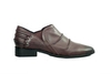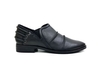 Dress loafer made with synthetic leather upper, low stacked heel, slip-on entry, decorative paneling; packaged in individual pairs for retail and distribution.