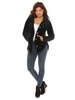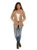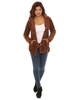 Button up hoodie in plus sizes 1X–2X, 65% polyester / 35% cotton, 28" length, dual front pockets, textured fabric; available in taupe, brown, black; made in USA.