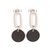 Rose gold earrings, plated alloy construction, contemporary hoop design, available in rose gold, silver, or gold tone, lightweight, packaged individually.