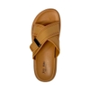 Criss Cross Strap Sandals cork footbed, synthetic cross straps, contoured arch support, open-toe design, slip-on style, individual pair packaging.
