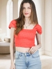 Artyska cotton‑linen smocked cap sleeve crop top, square neck, slim fit, breathable lightweight, durable fabric, solid color, made in India.