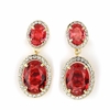 faux sapphire earrings with gold-tone alloy, oval-cut acrylic stones, rhinestone accents, and push-back closure; sold in pairs, individually polybagged.