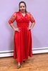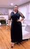 The pearl and rhinestone-studded waist complement the plus-size body type. The full-length, flowy skirt drapes elegantly and promises a neat, comfortable, and graceful look, making this dress a highly in-demand outfit.