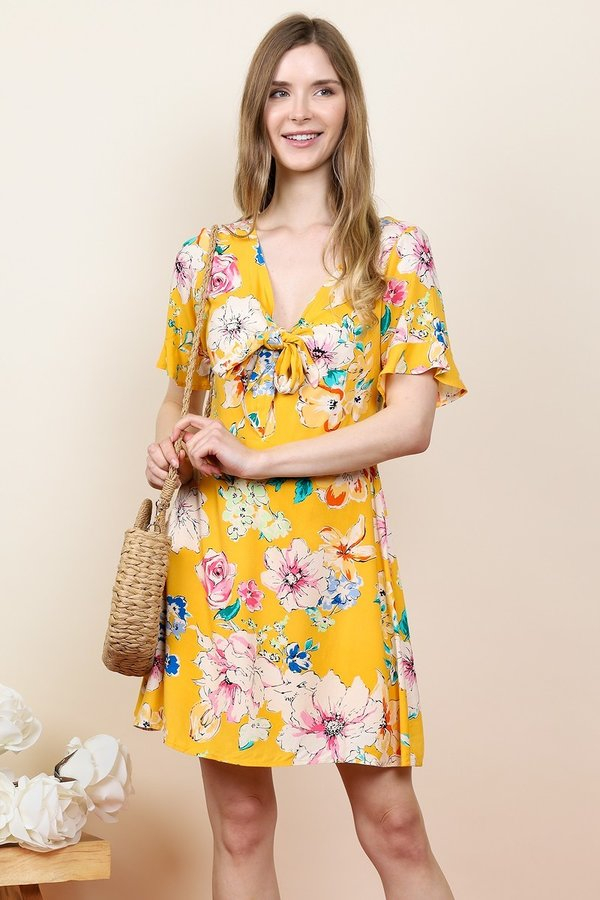 6 per style: In packs of S(2), M(2), and L(2) per color only. floral front tie dress