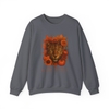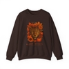 This unisex crewneck sweater features a seasonal leopard floral print set against a classic medium-weight cotton-poly fabric. Designed for structured comfort, it blends warmth and durability in an 8 oz/yd² textile that retains shape with frequent wear. Ribbed cuffs, hem, and collar provide stability, while tubular knit construction ensures a clean, seamless body.