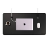 The Desk Mat Pro is crafted from a top layer of premium PU pebble‑leather and features a faux‑suede bottom for stable placement on work surfaces. An integrated metal‑infused inner layer enables magnetic cable accessories to be placed and repositioned across the mat without adhesive. Dimensions are 31 in × 16 in (79 cm × 40 cm).