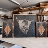 This Highlander cow wall art set features three handcrafted wood panels with engraved Western and tribal Aztec‑inspired designs, centered around a Highland cow motif. Each piece is laser‑engraved on premium birch wood, with detailed line work that highlights the animal and geometric patterns. Custom stain finishes enhance the natural wood grain and engraved details, allowing retailers to offer tailored décor options to different interior aesthetics.