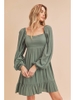Puff sleeveless mini dress, 100% rayon; square neckline; puff sleeves; smocked back; tiered skirt; white, black, eucalyptus, mauve, chocolate, ecru; hand wash; 453.6 g per unit; prepack 2–2–2 (S–L).