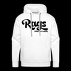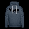 RAGSCLOTHINGLOGOBLK men’s premium hoodie, 80/20 cotton-poly blend, RAGS logo front print, adjustable drawstring hood, assorted heather options, Spreadshirt brand.