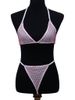 Rhinestone Bikini Set: Two-piece swimwear with rhinestone embellishments; polyester blend fabric; adult women’s sizing; packaged for wholesale swimwear assortments.