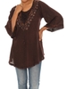 The Scoop Neck Lace-Accent Top from Shoreline Wear is a beautifully detailed tunic designed for effortless style and comfort. Made in the USA from lightweight 100% rayon, this lace accent top features embroidered detailing along the neckline and sleeves, bringing bohemian charm to your everyday wardrobe. Its flared sleeves and scalloped hem add an extra touch of flair, while the relaxed fit makes it suitable for both Missy and Plus Sizes.