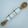 This waffle kitchen towels set includes one 18" x 28" cotton waffle-weave towel and a 15" hand-carved double-sided wooden spoon. The towel features a textured waffle pattern for improved absorbency and quick drying. The spoon is crafted from sustainably sourced wood and shaped for multi-functional use on both ends.