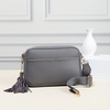 Mix-and-match with our guitar straps for a unique style. Size: 9.75" W x 6.5" H x 2.8" D Detachable Strap Zipper Closure 1 Open Pocket and 1 Zippered Pocket Inside Materials: Vegan Leather Gold tone hardware