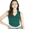 Ribbed collared crop top, V-neck sleeveless design, fitted stretch knit, summer casual wear, made in India, packaged individually.