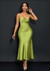 The rear profile of the dress includes a strappy open-back detail, which enhances its suitability for eveningwear or occasionwear segments. The satin material...