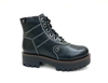 This black platform combat boot features a 100% leather upper and leather footbed, offering structure and durability suited for all-season wear. The interior lining combines 20% leather and 80% textile, enhancing comfort and moisture regulation. A cushioned insole supports extended use under varied operational demands.