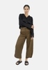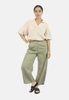 Baggy pants made from 100% cotton in sage green and taupe color; relaxed fit with elastic waistband and cuffs; adult sizes; sold individually.