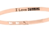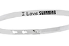 Swimming bracelet, polished stainless steel band, engraved “I Love SWIMMING,” bold text design, adjustable multi-hole clasp, slim profile, individually packaged.
