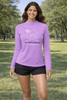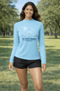 Performance Tee Shirts Polyester performance fabric, UPF 50+ sun protection, long sleeves, crew neckline; retail unit for women’s outdoor and activewear.