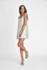 The Kealy Dress is a slip-style mini dress constructed from 100% polyester, featuring an all-over sequin design. It is available in silver and navy color options. The dress is offered in a one-size fit and is recommended for hand washing only.